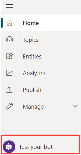 Let’s make sure that your bot is running as intended. Select the “Test your bot” button at the bottom of the sidebar.
