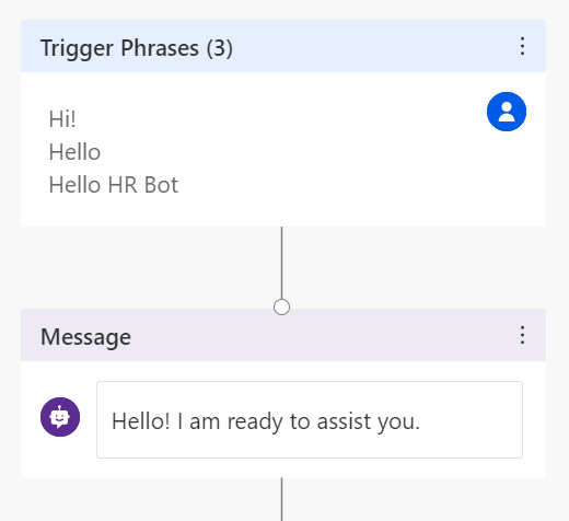 Type the message that you want the bot to respond to the trigger phrase with. In this example, we will be using the message “Hello! I am ready to assist you.”